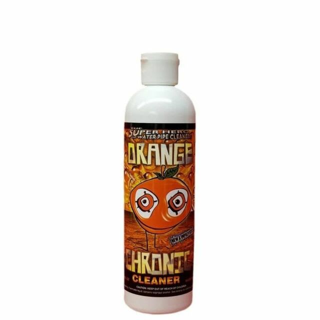 Orange Chronic Cleaner 16oz works immediately with no scrubbing or waiting. Simply shake your Solution until all contents are mixed. Place the desired amount of Orange Chronic in your piece and shake vigorously until desired cleanliness. Orange Chronic is easy to use and earth-friendly. Orange Chronic cleans glass and metals as well as Hookahs.